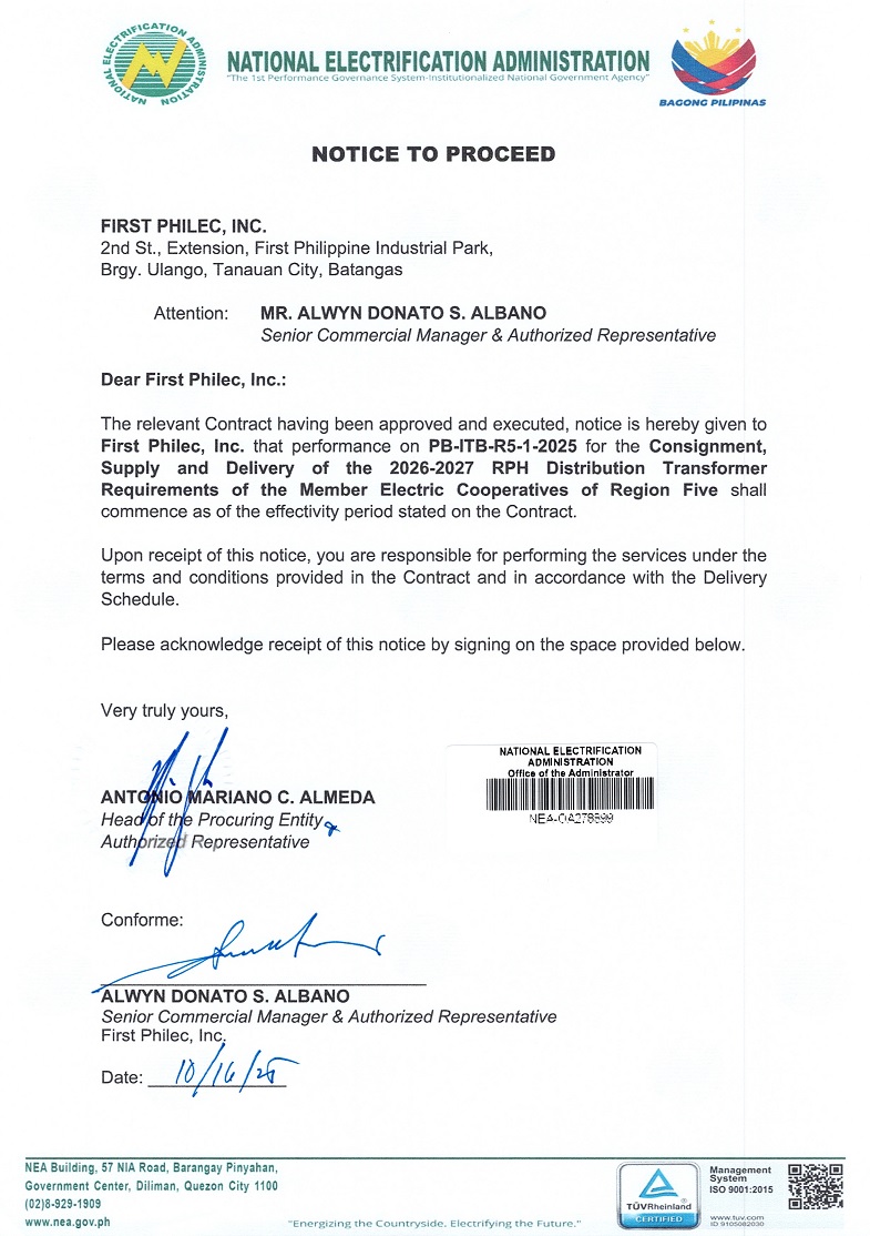 • Consignment, Supply and Delivery of the 2026-2027 RPH Distribution Transformer Requirements of the Member Electric Cooperatives of Region Five