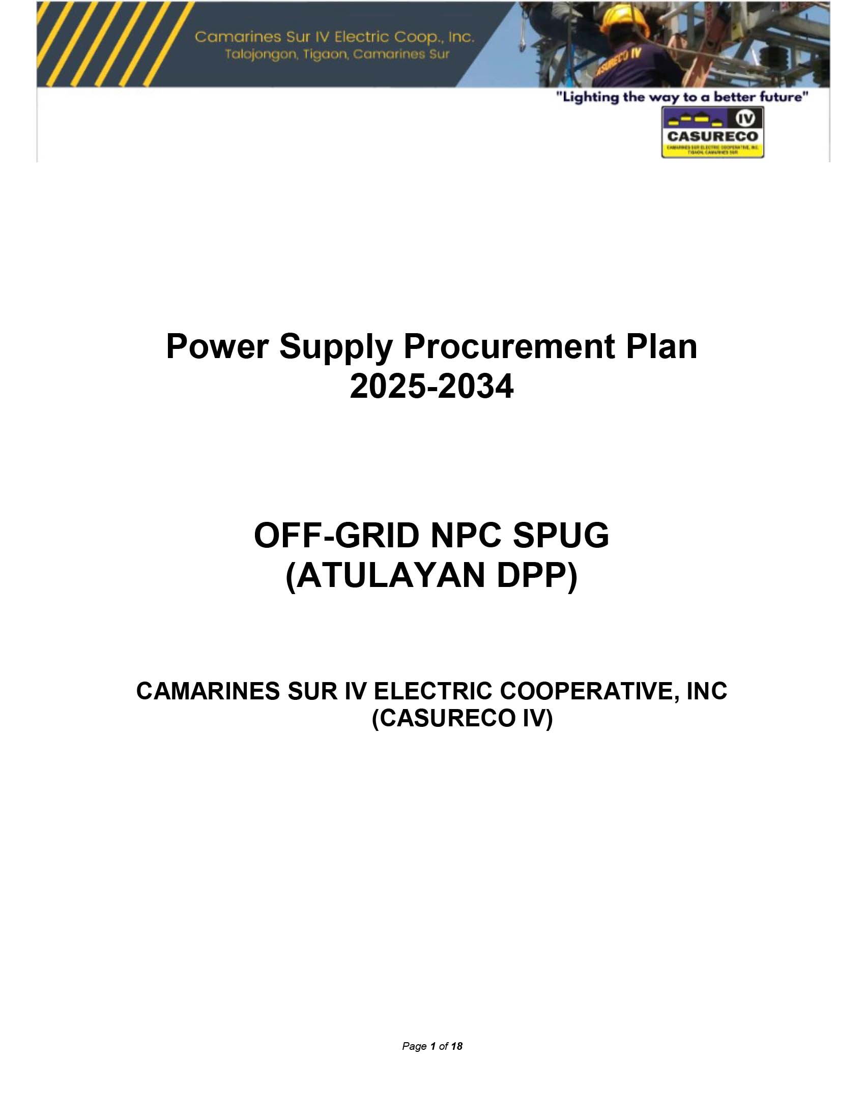 Power Supply Procurement Plan 2025-2034 (OFF-GRID(ATULAYAN))