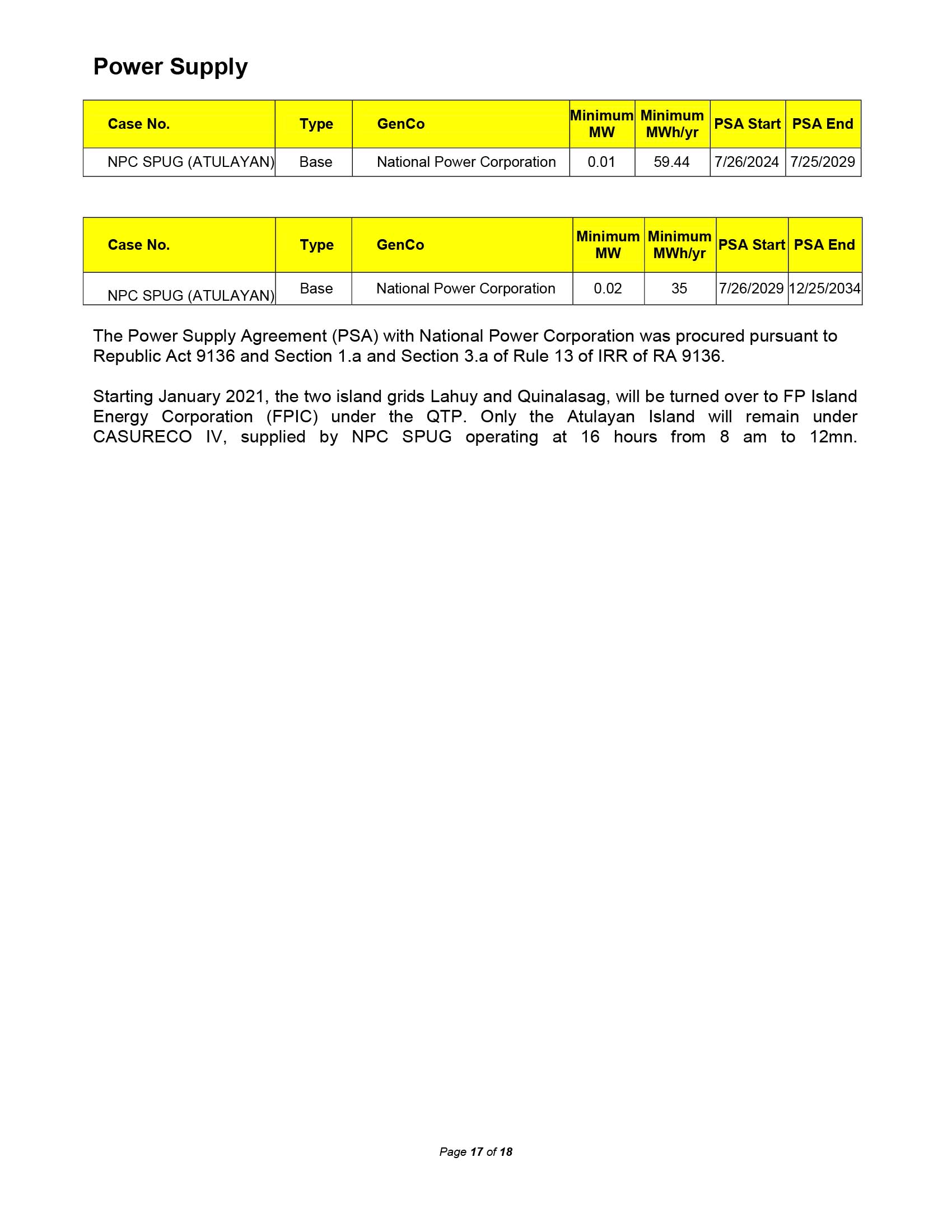 • Power Supply Procurement Plan 2025-2034 (OFF-GRID(ATULAYAN))